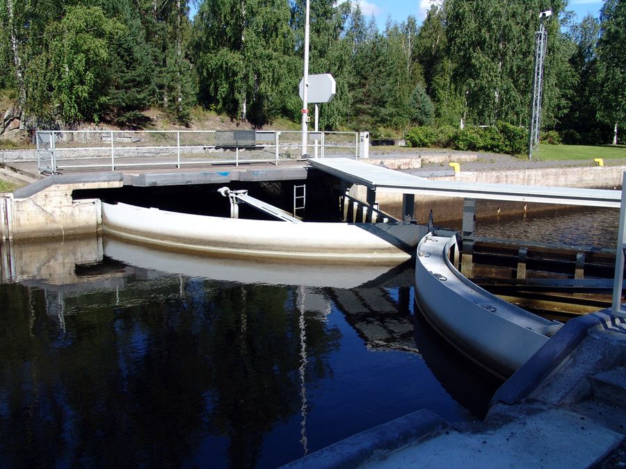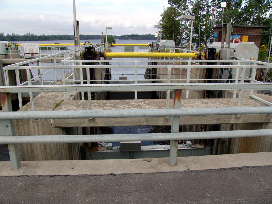 Kaskisten makeavesialtaan säännöstelyluukut ja venesulku.